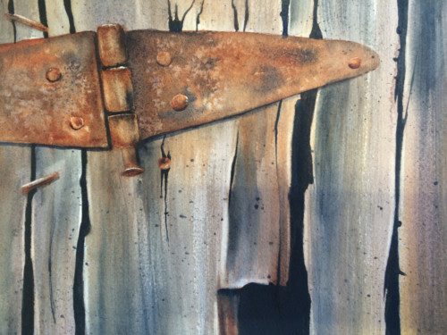Weathered Wood and Rusty Hinge in Watercolour